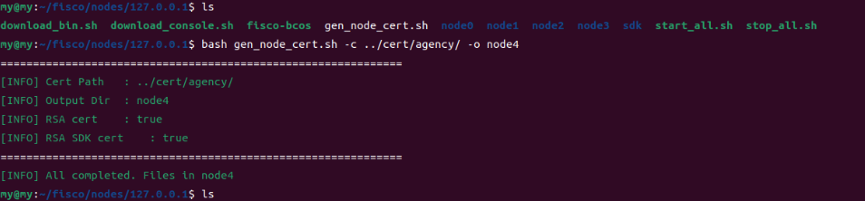 # -o输出到指定文件夹,其中node4/conf中会存在机构agency新签发的证书和私钥