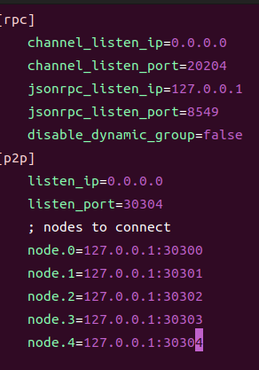 3.拷贝node0目录下的config.ini start.sh stop.sh 到node4目录